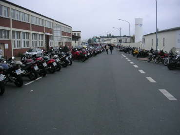 Das hier ist nicht das Fahrerlager, sondern die Zufahrt zum Gelände der Rennstrecke, gleich hinter dem FRoSTA-Areal, wo die Zuschauer, die natürlich auch zum Teil mit Motorrädern kommen, ihre Maschinen abstellen. Viele campen auch die Tage über in der Gegend. Allerdings kann man sehr wohl zwischen den Rennen mal durchs Fahrerlager bummeln. Davon habe ich leider kein Foto, denn da ich beim letzten Mal nicht auf dem Gelände war, musste ich die Fotos teilweise als Zaungast von außerhalb bzw. nach der Veranstaltung machen.