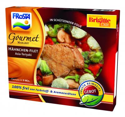 Auch neu beim Hähnchen-Filet: Dies ist die erste Gourmet Mahlzeit als Brigitte-Diät Gericht. Spannend, ob das die Verbrauchergunst trifft. Bei unserem FRoSTA-internen Vorab-Test war Asia-Teriyaki auf jeden Fall öfter „vergriffen“.