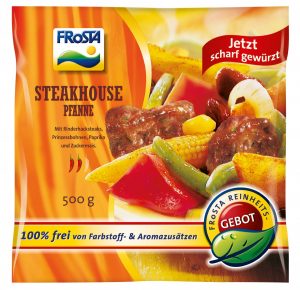 Und noch ein Gericht sorgt für mehr Schärfe im FRoSTA Sortiment: Die neue Variante der „Steakhouse Pfanne“ enthält eine Extraportion Cayennepfeffer. Dieses Gewürz wird übrigens nicht aus Pfefferkörnern, sondern aus gemahlenen Chillischoten hergestellt. Wir sind gespannt, ob Euch die neue Version der „Steakhouse Pfanne“ gefällt und wünschen guten Appetit!