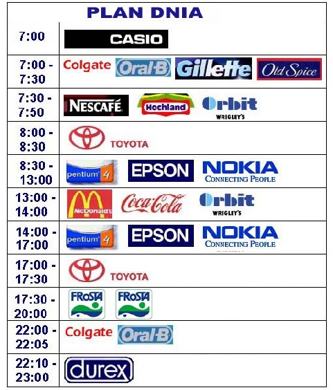 ….zum Ende des Tages bekomme ich gerade vom FRoSTA Marketing in Polen den Tagesplan („plan dnia“ auf polnisch):